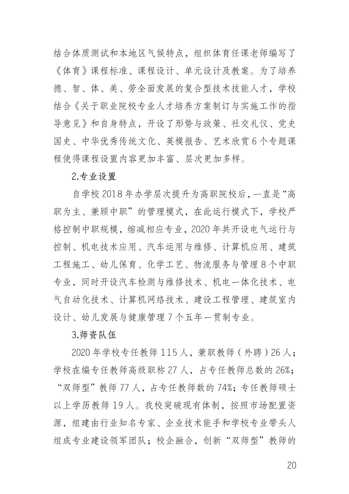 2020年度中等职业学校编制年度质量报告