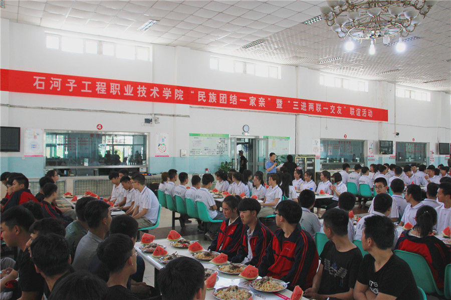 上午,学院党委书记陈彦斌、校长冯保生、副校长石军、王智,党委委员简基松、王胜利与师生共同观看电影《昆仑兄弟》,影片以新疆正在开展的“民族团结一家亲”活动为背景,讲述了结亲干部全心全意为结对子亲戚排忧解难彼此之间建立了深厚的情谊,影片反映的新疆独特的自然、人文景观和各族人民用行动践行“像石榴籽一样紧紧抱在一起”的民族团结之情,电影反映出的美与善及亲如一家的民族感情赢得师生们发自内心的笑和泪还有久久不停的掌声。观影结束后学院党委组织了师生在校内食堂共进晚餐,免费向师生们提供抓饭、酸奶及水果。院(校)党委委员简基松、王胜利同志代表学院党委向师生致以真挚的节日问候,师生亲密的坐在一起聊学习,聊学院的新发展新变化,民族团结情暖校园。
