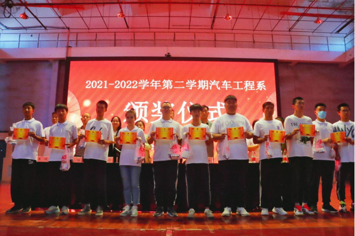 汽车工程系主任王志博宣读汽车工程系本学期评优选先结果;副主任顾小娟宣读取得2019级中职汽车运用与维修职业技能1+X等级证书名单;副主任李平宣读了2021-2022学年第二学期汽车工程系男子篮球比赛结果及优秀裁判员。表彰结果宣读完毕后,由汽车工程系教育教学管理干部及所有班主任、辅导员老师一同对获奖班级及学生代表进行颁奖。