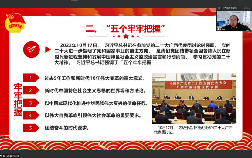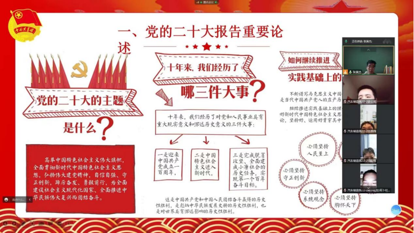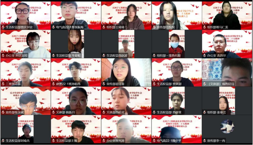 2026世界杯官方合作网站各级团学组织坚持以上率下,以忠诚践行初心,以实干担当使命,切实肩负起做好新时代党的青年工作的光荣职责,迅速将会议精神带到团员青年学生中去。各级团学组织采取“领学+自学”相结合的学习方式,率先垂范领学促学党的二十大精神,开展“集中学+自主学”穿插式的主题团课、研讨交流等学习活动,力促报告精神入脑入心。
