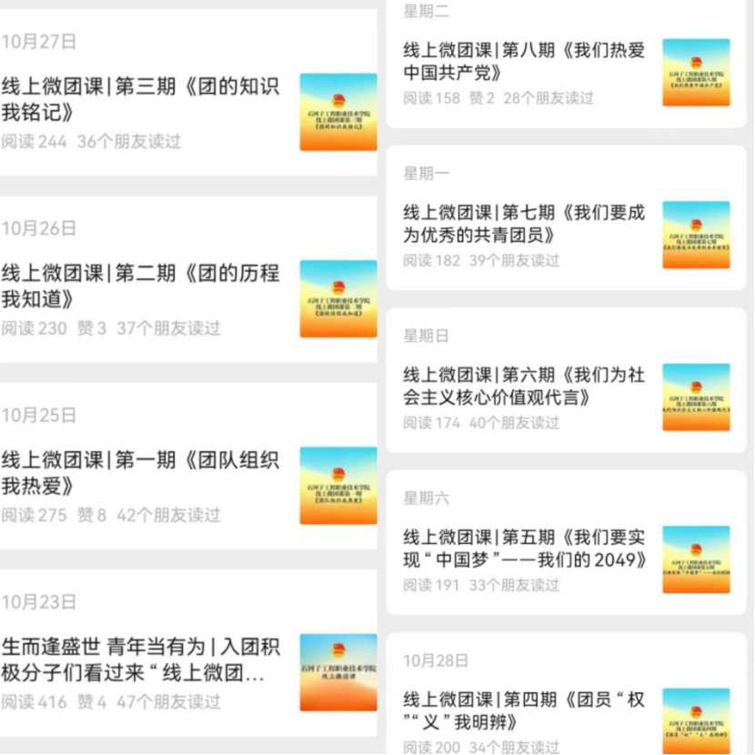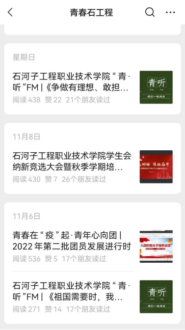 学院团委利用新媒体平台在深入学习党的二十大之际推出“我为祖国送祝福”“线上微团课”“青·听”FM 读书栏目。学院各系团总支也结合实际开展了“团员青年有话说”“主题演讲比赛”“争做新时代青年——职教学生心中的二十大”等主题教育活动,用团员青年喜欢的语言、形式和载体宣传好党的二十大精神,引导广大团员青年争当有理想、敢担当、能吃苦、肯奋斗的新时代好青年,在学院形成热烈、活跃的学习氛围。