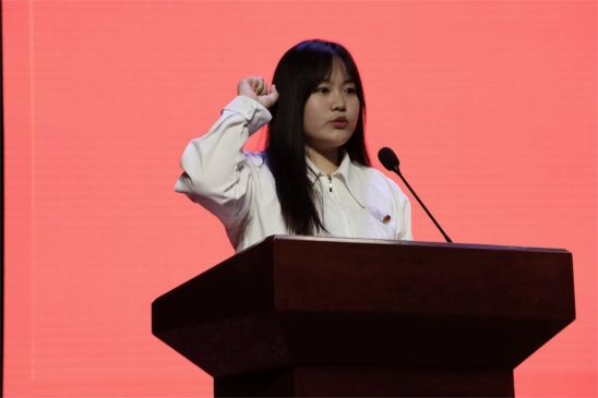 随后,石军副院长宣读新团员名单,正式宣布104名新团员光荣加入共青团组织。老团员代表常袆在鲜艳的团旗下带领新、老团员们一起重温入团誓词,全体团员右手握拳,手举过肩,以最洪亮的声音进行庄严宣誓。在高喊出自己名字的那一刻,新团员们也正式肩负起团员光荣而艰巨的责任。