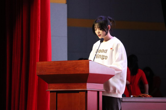 新团员代表马艳发言并号召全体新团员说到:“从104年前五四运动开始,青年的身影不断出现在历史舞台上,为当时积贫积弱的祖国贡献出自己的力量;到了今天,山河犹在,国泰民安,生逢盛世而身为“后浪”的我们更应有所作为,我辈青年,以创新为刃,划破茧壳。扮相儒雅,谈笑大方,一唱一转间焕发青春的光彩。”
