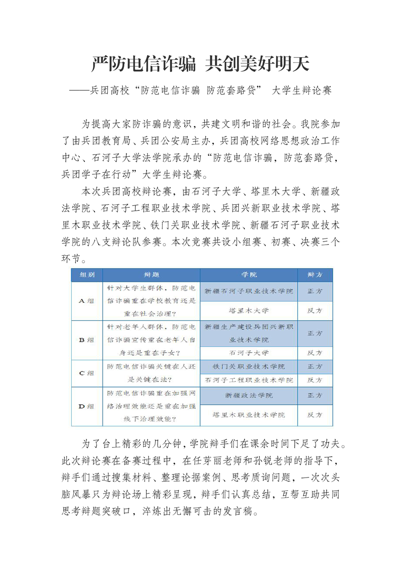——兵团高校“防范电信诈骗 防范套路贷” 大学生辩论赛